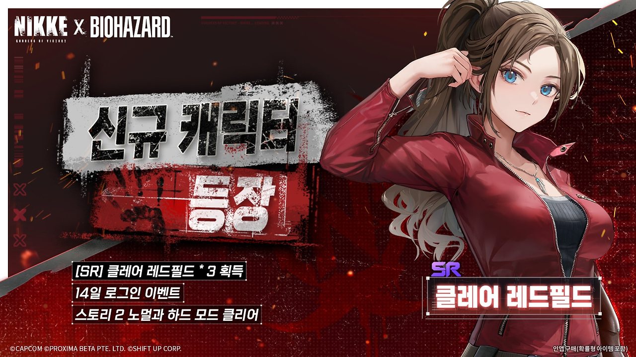 - 클레어 레드필드 (Claire Redfield): SR 캐릭터로, 콜라보 이벤트 **[REBORN EVIL]**을 통해 획득할 수 있어요!