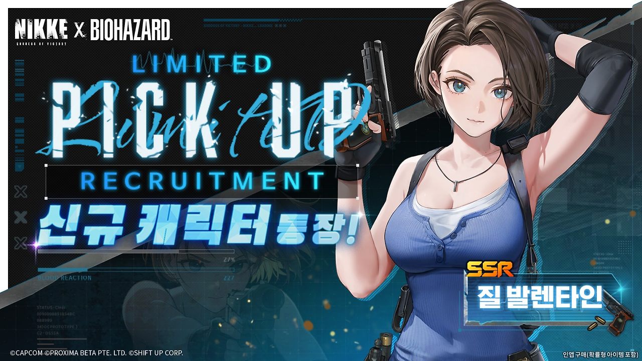 - 질 발렌타인 (Jill Valentine): 역시 기간 한정 모집으로 합류하는 SSR 캐릭터랍니다.